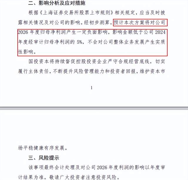 与此同时,国投瑞银基金间接控股公司国投资本2月23日晚间发布公告,预计此次补偿将对国投资本2026年归母净利润产生一定负面影响,但影响金额低于2024年经审计归母净利润的5%,即约1.35亿元。