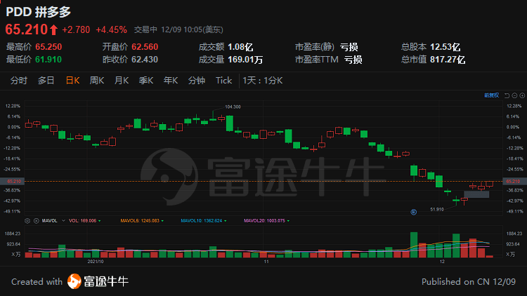 涨超4%,麦格理予拼多多跑赢大市评级,目标价95美元。