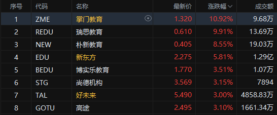 教育股多数上涨,涨近6%,、高途涨超3%。近日,广东省教育厅公示了线上学科类校外培训机构「备改审」名单。