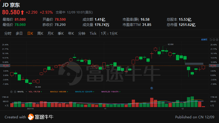 涨近3%。晚点 LatePost报道,京东集团京东国际负责人闫小兵因家庭原因和身体原因提出在明年春节后退休,国际业务由原京东零售通讯事业部总裁 Daniel Tan(陈冠翰)接任。大和发布报告称京东集团为电商行业首选股份。