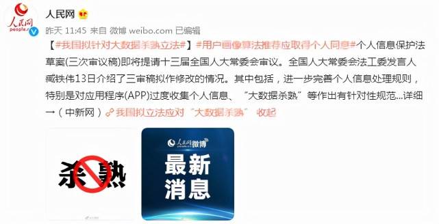 所以国家确实有必要出手了,相信随着立法的完成,会有效解决大数据杀熟乱象。
