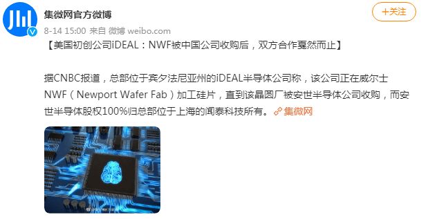 原本NWF还在威尔士帮助其生产硅片,直到安世半导体完成收购交易,这家英国芯片巨头突然宣布断供美企。