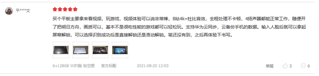 “买个平板主要拿来看视频,玩游戏,视频体验可以说非常棒,B站4k+杜比声音效,全程处理不卡顿,4扬声器都能正常工作……”这是来自众多用户的评价之一,个人觉得这位用户应该还没真正发掘荣耀平板V7 Pro的优点。