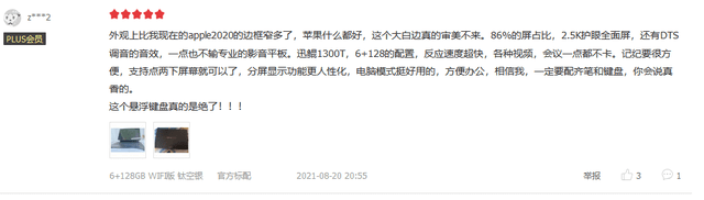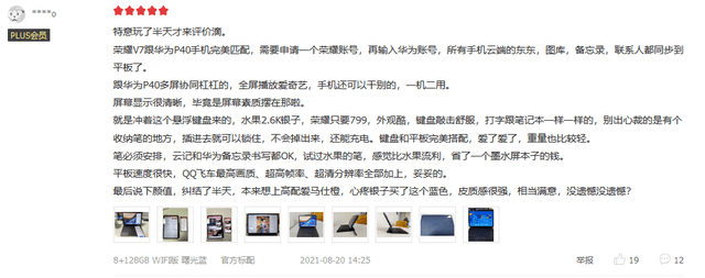 看到评论里有很多用户都表示,荣耀平板V7 Pro一定要配合荣耀Magic-Pencil 2和Magic悬浮键盘二件套使用,就如这个网友就表示“键盘和平板完美搭配,重量也比较轻,云记和备忘录数据都ok,比水果流利”。