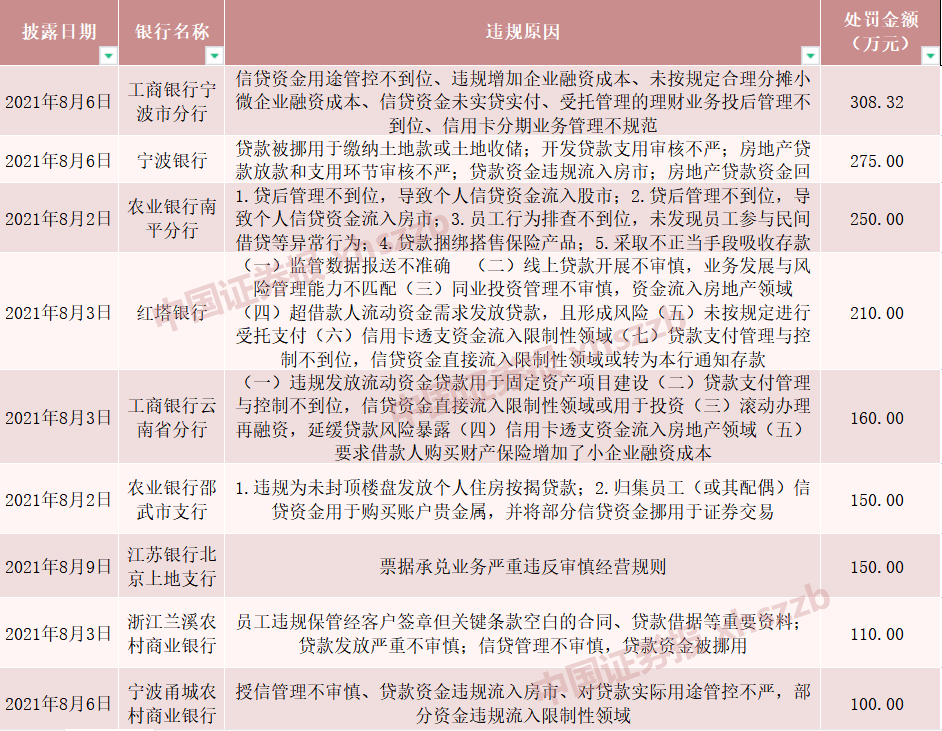 例如,宁波银行因贷款被挪用于缴纳土地款或土地收储、开发贷款支用审核不严、房地产贷款放款和支用环节审核不严、贷款资金违规流入房市、房地产贷款资金回流借款人、票据业务开展不审慎等6项案由被宁波银保监局罚款275万元。