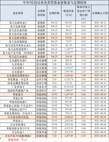 8月刚过半,就有华夏基金、招商基金、广发基金等旗下32只公募产品参与股票定向增发,成本总额为4.99亿元。其中,不乏百亿级明星基金经理“组团”参与上市公司定增。