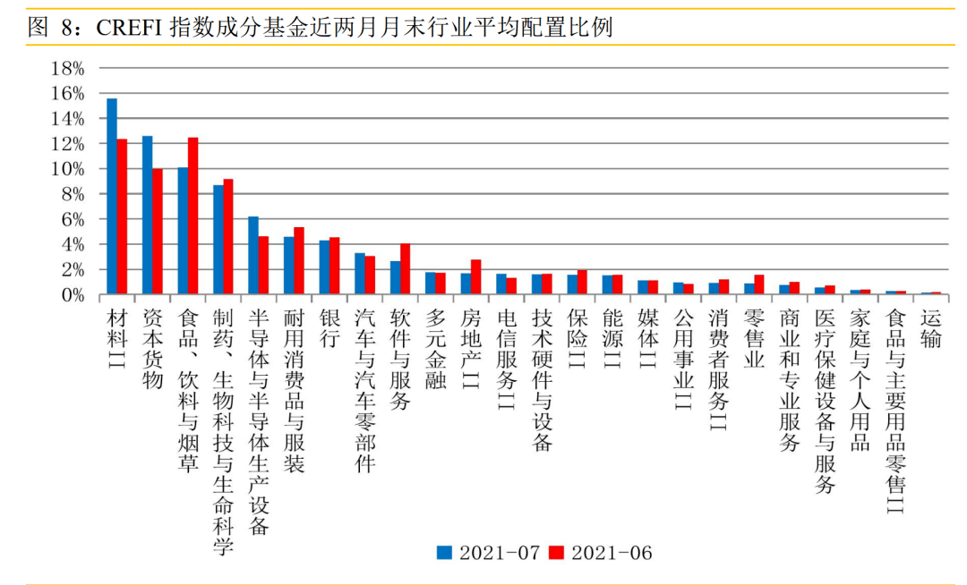 材料为第一重仓、且增持最大的板块