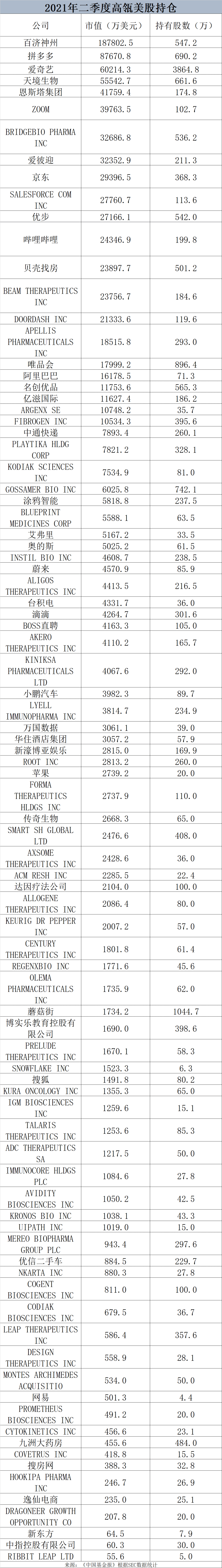 二季度,高瓴在美股市场持有89家公司、总市值97亿美元(约合630亿人民币),中概股、生物医药、硬科技、先进制造、碳中和依旧是高瓴二级市场团队的投资主线。