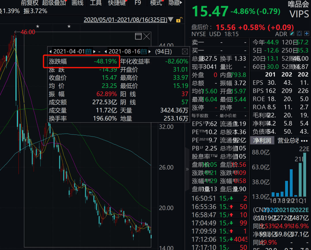 不过,从目前的表现来看,二季度以来,唯品会和名创优品这两大中概股的股价分别跌了48%、45%。
