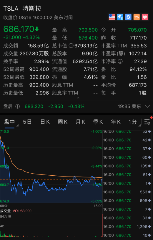 受此消息影响,特斯拉周一跌超4%,市值蒸发306亿美元,近2000亿人民币。