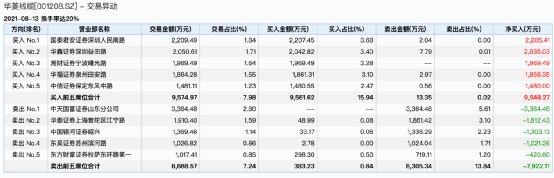 卖一为中天国富证券山东分公司,该席位卖出3364.48万元。卖五为东方财富证券拉萨东环路第一证券营业部,净卖出420.80万元。