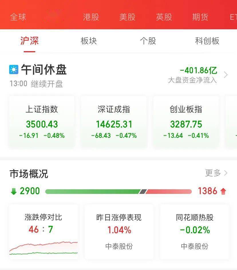 上午收盘,主要指数全线下跌,上证指数跌0.48%,深证成指跌0.47%、创业板指数跌0.41%,科创50指数跌0.85%,两市成交额7448亿元,个股2900只下跌,1386只上涨。
