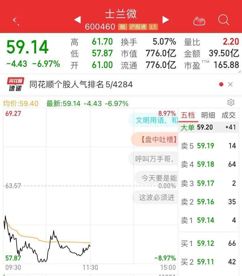 昨晚公布业绩暴增的士兰微,市值800多亿,今天暴跌6.97%,近7%。