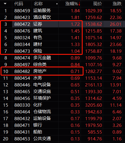 券商保险地产等传统板块久违持续上行