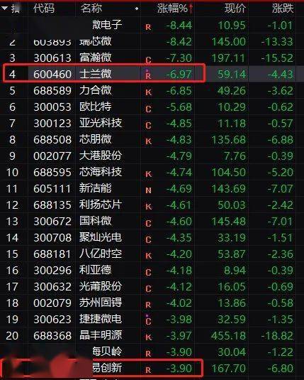 半导体板块当中,士兰微、瑞芯微、富瀚微、国科微、兆易创新等重要个股都出现较大下跌。超千亿市值的兆易创新下跌3.9%。