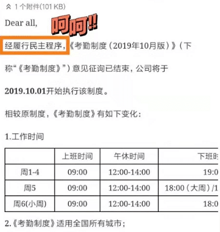 也有网友爆料到。纸巾我一直是自己买的,公司从未提供。大小周,加班无调休,天天十点后。算时薪,少的可怜。还强制要求工时,不想要生活就来吧。上班时间从以前的9:30~6:30,刚改为9:00~7:00,大小周不变,加班排名不变,强制工作9.5小时不变。上头一句话政策就改一次,看自己吧,要是薪资要的高可以来试试。要的低还是找其他的吧。