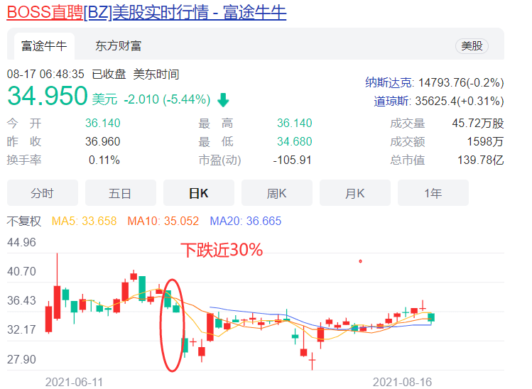 受此消息影响,BOSS直聘的股价一度暴跌近30%。