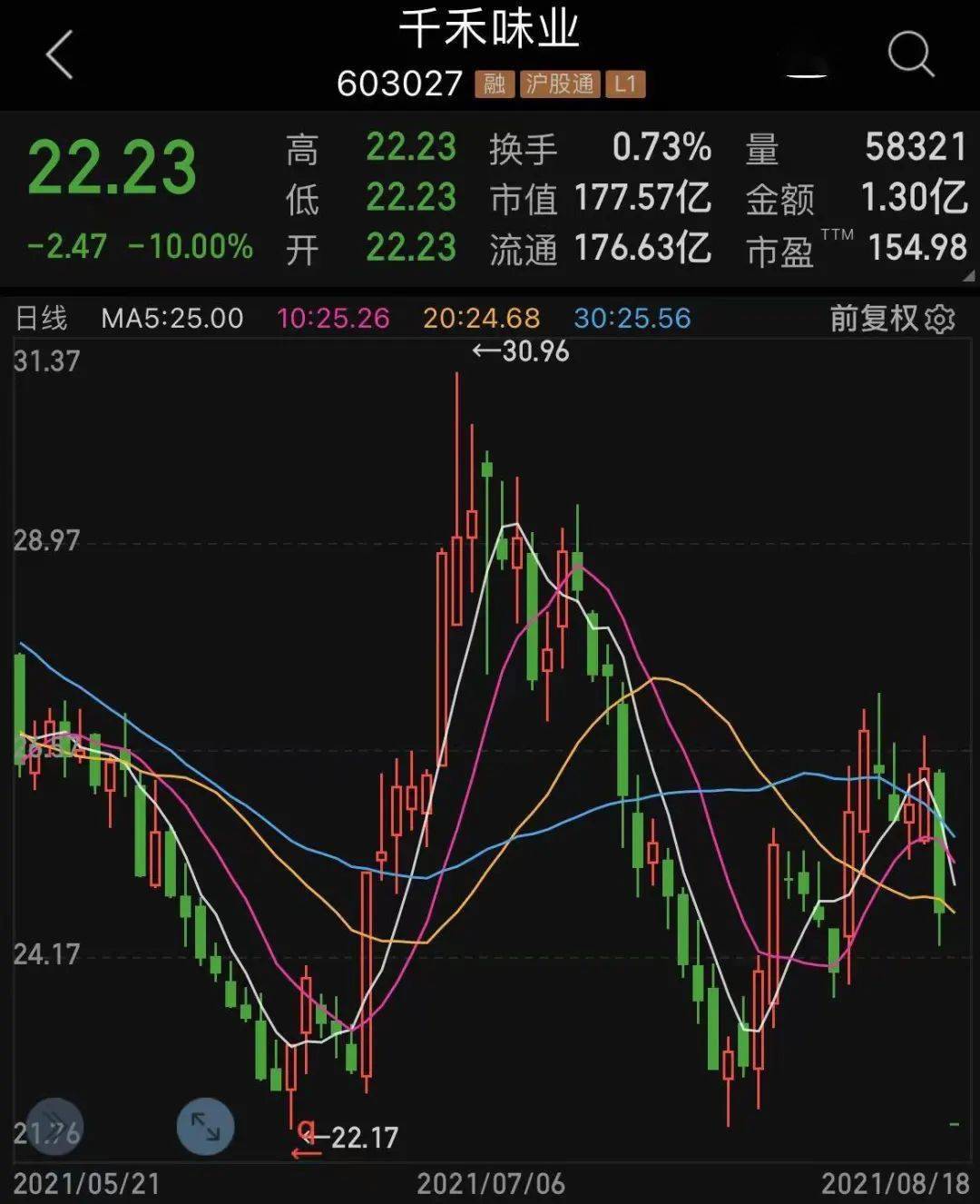 继昨日大跌逾6%后,食品行业小白马 千禾味业今天上午一字跌停,截至中午收盘封单依然超过7万手。消息面上,公司昨日公布半年报,今年上半年公司实现营业收入约8.86亿元,同比增加10.82%;归母净利润6580多万元,同比下降58.09%,扣非后归母净利润6590多万元,同比减少57.16%。