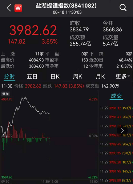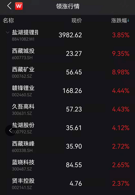 盐湖提锂概念涨近5%,西藏城投、西藏矿业领涨,赣锋锂业、盐湖股份双双涨超4%。