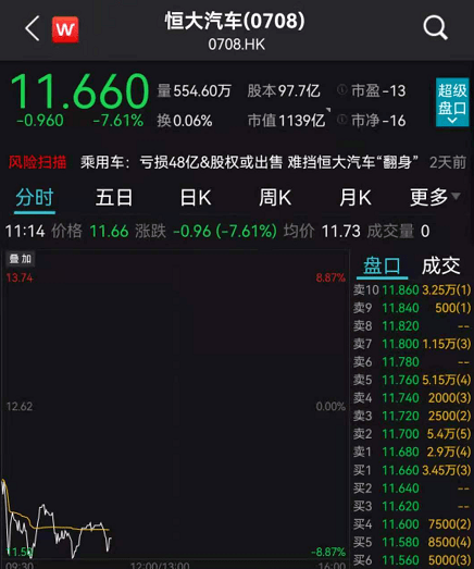 今天,恒大系股票继续大跌。截至记者发稿,恒大汽车跌超7%。