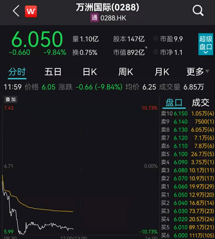 港股万州国际一度跌近11%,截至收盘仍暴跌近10%。