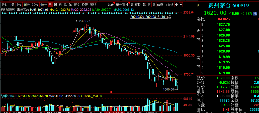 8月18日,贵州茅台盘中再度下行,创下年内新低来到1600点。市值距离2608.59元高点以来,已经蒸发超13000亿,令人咂舌!