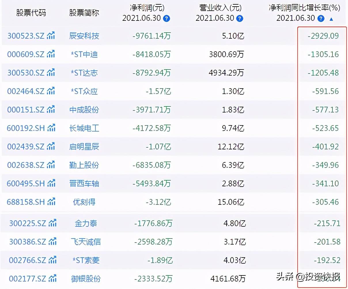 中报业绩大幅亏损公司名单曝光