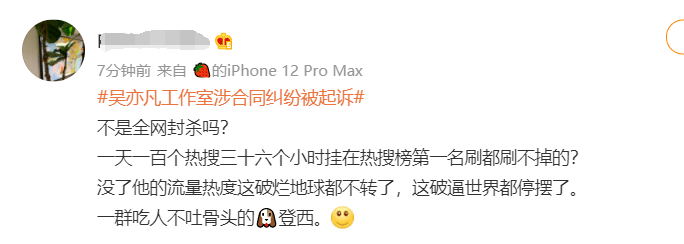 截至发稿,#吴亦凡工作室涉合同纠纷被起诉#的热搜第一,阅读仅1.2亿,6000多人次参与讨论。