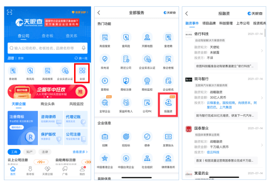 天眼查“投融资”功能