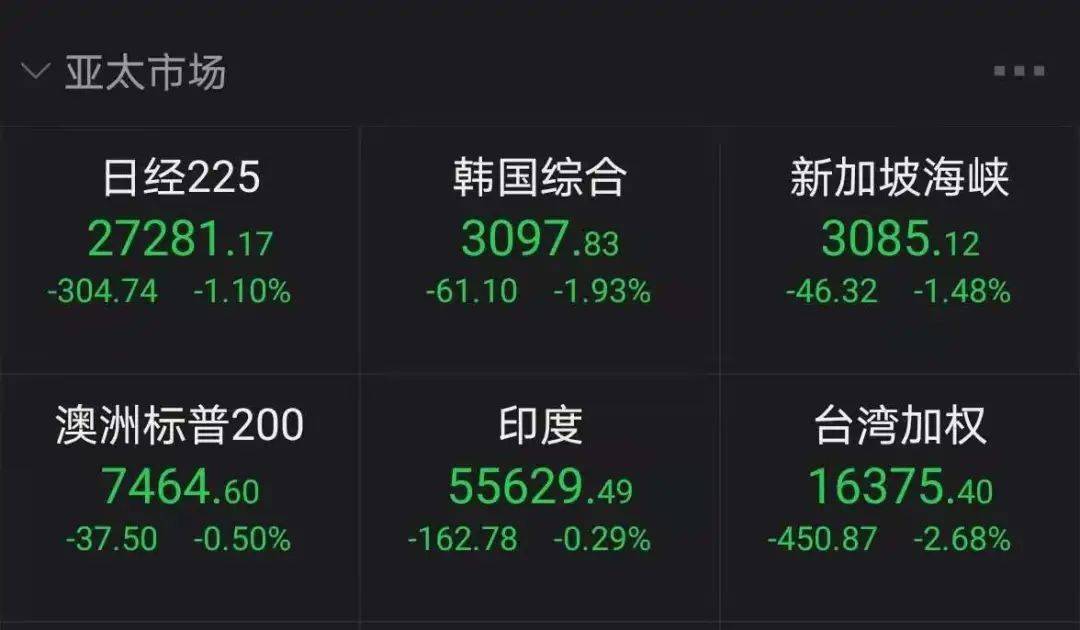 欧洲股市开盘,三大股指全线大跌,其中法国CAC40指数跌超2.6%。而今日收盘的日、韩、中国台湾股市均出现大跌。