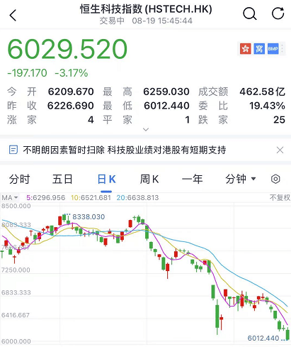 今天的港股,恒生科技指数跌幅扩大至3%,