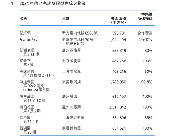 分项目来看,主要包括在香港的物业销售项目共2个;及内地的东莞海逸豪庭、广州逸翠庄园、上海高逸尚城及上海御沁园等6个项目。