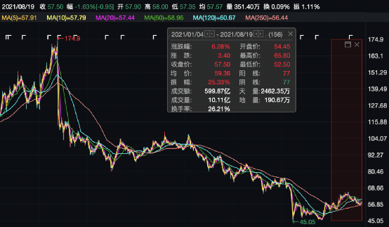 不过,长和的股价表现却不如长实集团,长和在3、4月份强势反弹后便开始震荡下跌,年内该股涨6.28%,当前股价与2015年的历史高点相比,已经累计跌超67%。截至8月19日,该股报57.5港元,总市值2212.77亿港元。