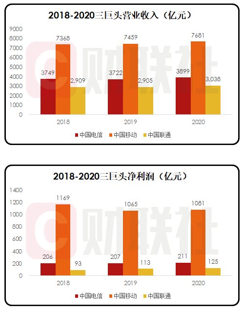 三大运营商2017年以来均实现增长,但收入规模增速却都不快。净利润方面,三者则存在明显分化,整体表现出利润增长与规模大小成反比的情况。