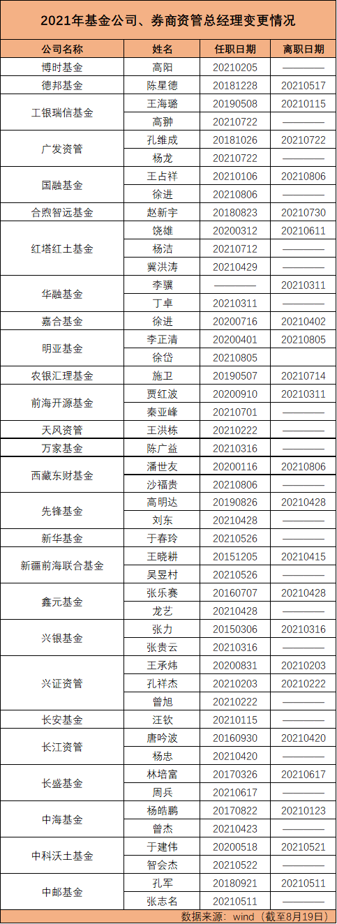年内已有23家基金公司、5家券商资管出现总经理变更