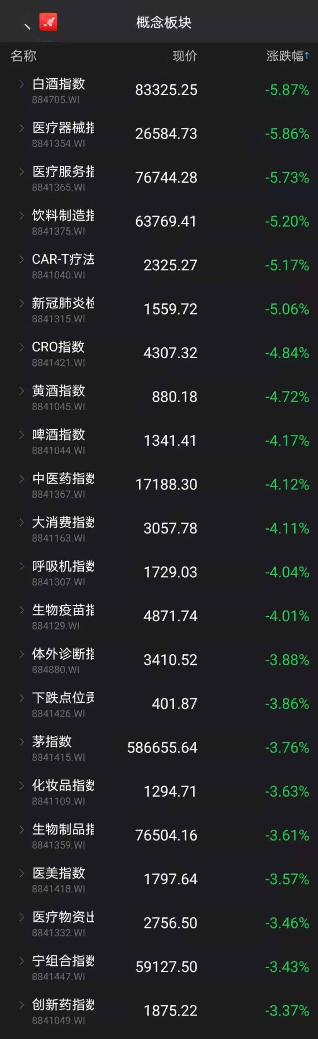 谭冬寒:今天医药和消费行业大幅下跌,我们认为有几个因素的共振:一是昨天安徽省出台文件做IVD试剂集中采购,市场从担忧IVD企业的业绩受影响,进而泛化到担忧所有医疗器械企业;二是市场监督管理总局价监竞争局发布了《关于召开白酒市场秩序监管座谈会的通知》,市场担忧白酒的终端价格受管控,进而泛化到担忧所有高利润率行业的企业都会受到更严格的监管和限制;三是昨天某医药龙头股出了低于预期的中报业绩。