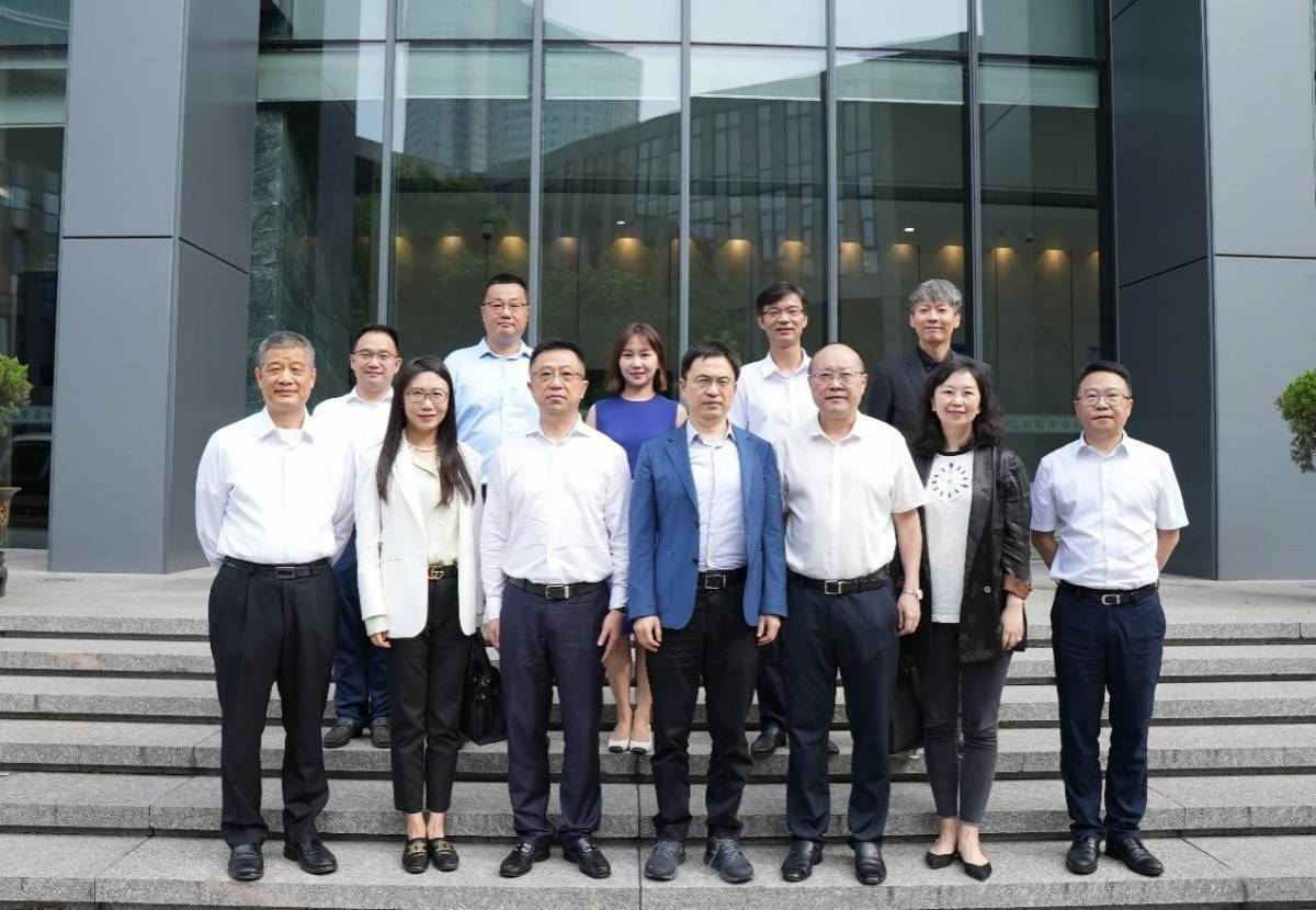 杭州市国资委主任王希(左三)、高瓴创始人张磊(左四)