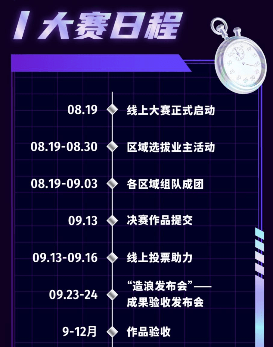 随着《造浪计划》正式发布,美的置业各区域选拔活动同步开启,参赛队伍需在8月19日-9月3日组队成团,于9月13日提交决赛作品,全民线上投票通道将于9月13日-16日开启。