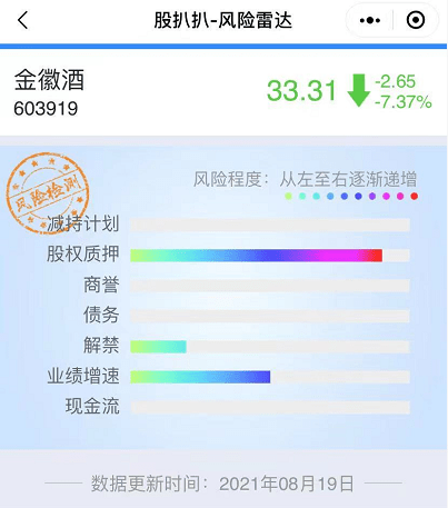 虽然,白酒股业绩依旧过硬,但市场风险的变化应引起大家注意,而我们不妨打开股扒扒,查看一下金徽酒的风险还有哪些?