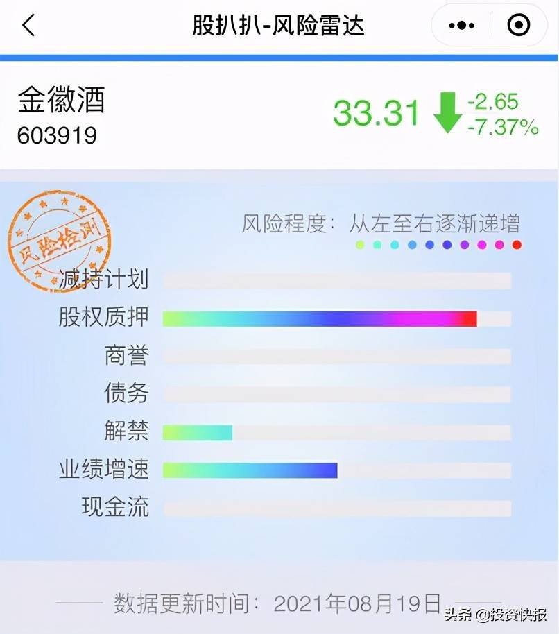 虽然,白酒股业绩依旧过硬,但市场风险的变化应引起大家注意,而我们不妨打开股扒扒,查看一下金徽酒的风险还有哪些?