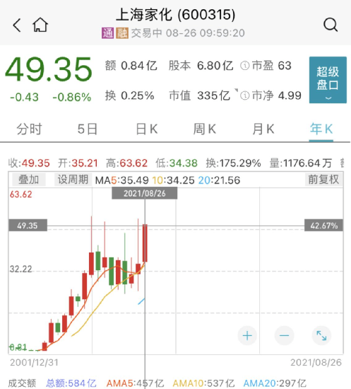 上海家化是国内家化行业龙头之一,品牌布局全面,2020年5月,潘秋生成为上海家化新任董事长,开启变革转型。上半年营收42.1亿元,同比增长14.3%;归母净利润2.9亿元,同比增长55.8%。今年以来,上海家化股价累计涨超42%。