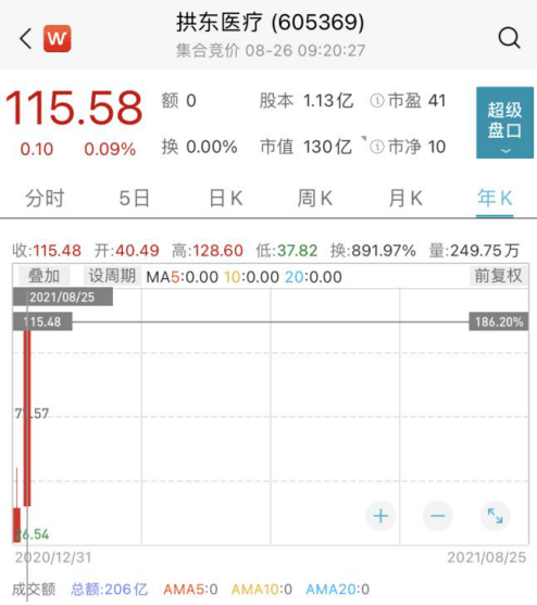 拱东医疗是国内高分子医疗耗材龙头企业之一,产品覆盖真空采血管、试验检测耗材、体液采集、医用护理、药包材等领域,公司现有采血管产能5亿支,实验检测及其他项目产能7500吨。上半年公司营收5.76亿元,同比增长70.76%;归母净利润1.77亿元,同比增长97.75%;业绩略超市场预期。今年以来,拱东医疗股价累计涨幅高达186%。