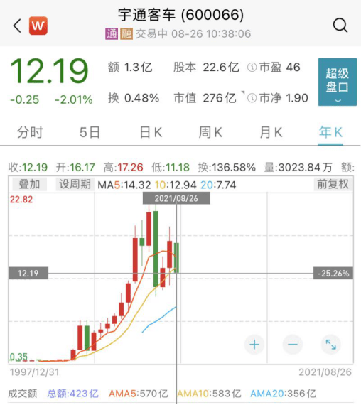 作为行业龙头企业,宇通客车是一家集客车产品研发、制造与销售为一体的大型现代化制造企业。公司上半年实现营业收入98.06亿元,同比增长28.83%;实现归属于上市公司股东的净利润1.45亿元,同比增长130%。今年以来,宇通客车股价累计跌超25%。