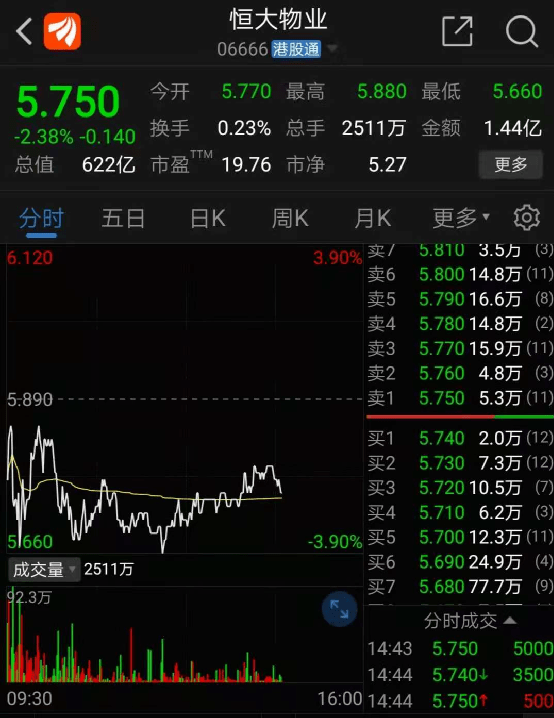 恒大系股票全线下跌