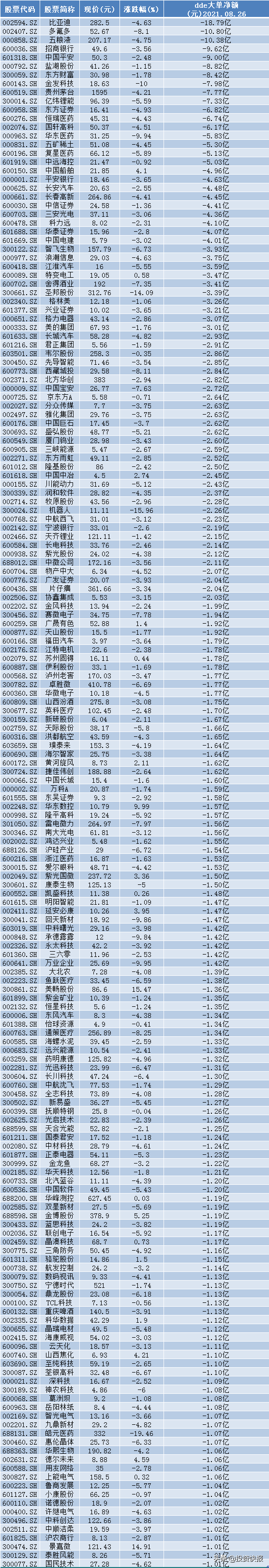 据越声攻略统计,截止今日收盘,近800亿主力资金出逃,有178只个股遭到超亿元的资金抛售。其中,主力出逃最多的是比亚迪,大单净流出高达18.79亿元。另外,多氟多、五粮液、招商银行、中国平安、盐湖股份、东方财富等6只个股均遭到超8亿元的资金抛售。