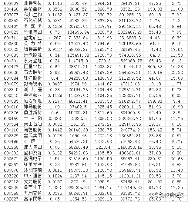 另一方面,根据iFinD数据统计显示,在已公布半年报的2172家上市公司当中,营业收入增长超过100%的有57家,其中包括岩石股份、巨星农牧、华辰装备、三维化学、亚通股份、中科海讯、福能东方、富满电子、宇环数控、九华旅游等。
