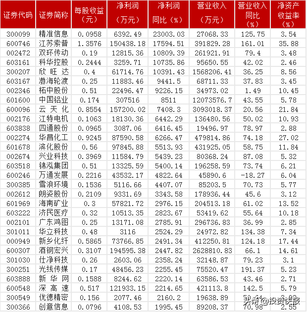 根据iFinD数据统计,最新公布半年报的2172家A股上市公司,净利润同比增长超过1000%共有65家,其中精准信息、江苏索普、双环传动、科华控股、欣旺达共5家上市公司净利润大幅增长,同比涨幅均超过10000%。