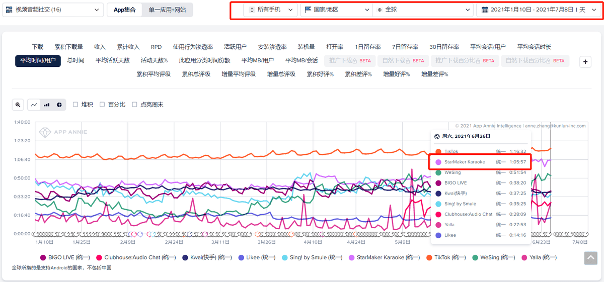 第三方机构数据显示,StarMaker的用户每日在线时长超过65分钟,与Tiktok同属第一梯队。