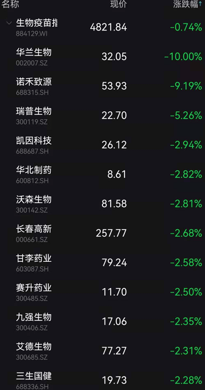 生物疫苗板块走低