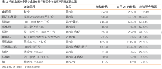 部分小金属涨价情况